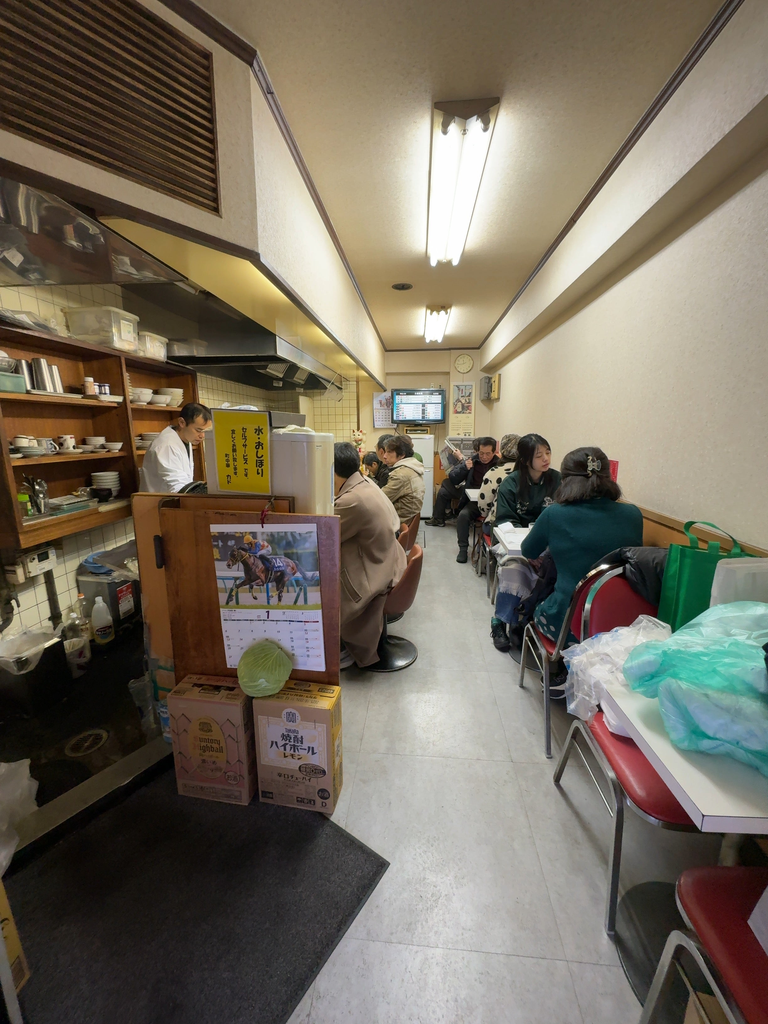 「町中華で飲ろうぜ」の記念すべき第一回に登場した店。日曜日昼は無謀かと思ったが正午前満席なるも5分ほで座れた。競馬好きなマスターと競馬談義する常連さんが粘っているから回転はあまり良くない。