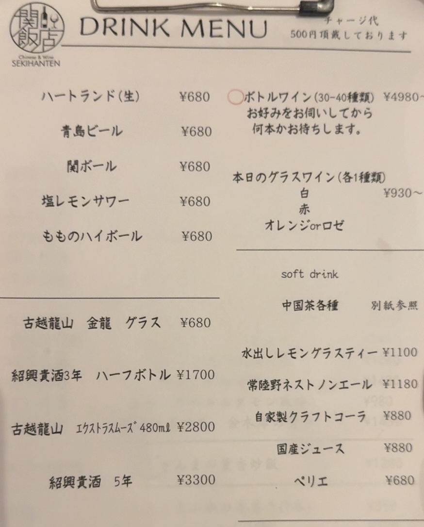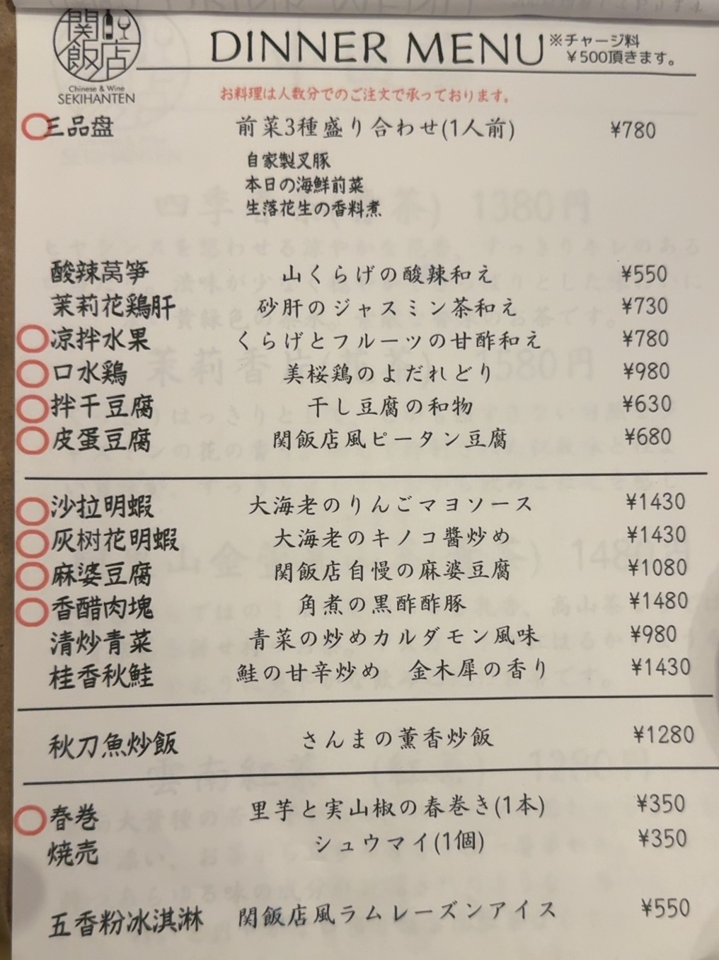 シェフはヒルトン東京の中国料理「王朝」出身とのこと。メニューはこれだけ