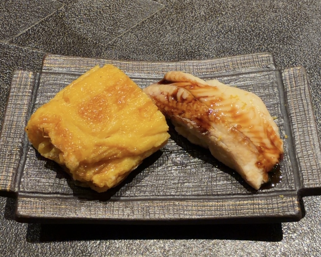 他のもっと高いメニュー頼んでる人には、クエの焼き物とかカニとかが出ていた。だけど、この程度で充分美味しく満足。よくあることだが同じネタをアテやら握りやらで何度も出されるのはなんだかなぁと思うし