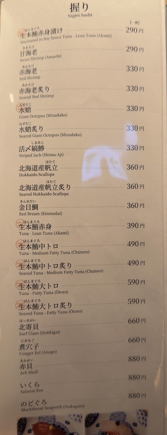 テーブル席多く、 なんとなくちょっとまともな鮨をつまみながらグループでワイワイ やりたい家族連れやインバウンド向け。居酒屋風の形態。 これからこういう店が増えるんだろうな。再訪はない。