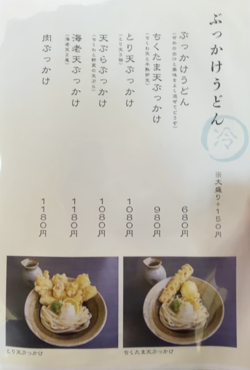 前回かけうどん(過去記事参照)が良かったので今回はぶっかけ 680円